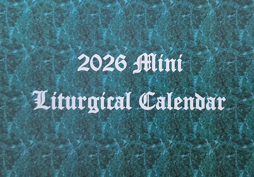 This mini-liturgical calendar is a smaller version of the full Calendar and is designed to be taken conveniently with you wherever you go.  It includes all 12 months in a smaller size that is designed to fit into most prayerbooks, missals or breviaries for convenient reference to feast days, holy days, and other liturgical seasons.  Each month comes in a separate 4" x 6" (11.5 cm x 15.5 cm) sheet with the same size text as the regular size 2024 liturgical calendar according to the 1962 Typical Edition of the Roman Missal.  It does not include pictures, just the text for each day of each month. Comes packaged in a plastic sleeve for easy storage.