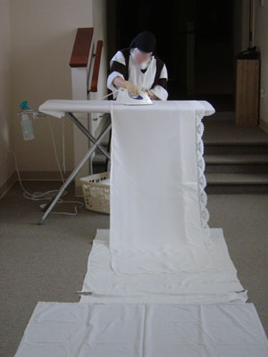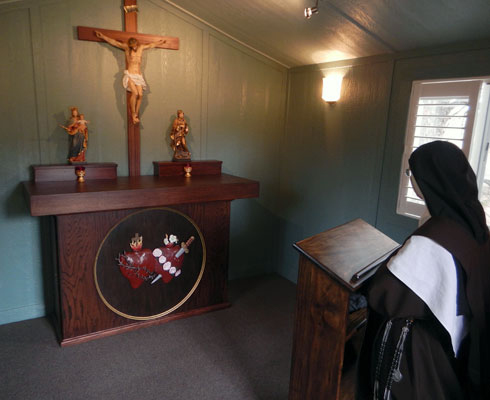 Our day ends at 10:30 p.m. Eight hours of the day are spent in prayer and two hours in recreation, and about five hours are given to manual work, reading and study. Except for the time of recreation, we strive to keep strict silence and recollection so as to make our lives of prayer continuous. During recreation, the Sisters may converse, and it is a joyful time, but our hands are always busy on the many and various works by which we support the community. We depend, also, on the generosity of friends and charitable alms of the faithful.
