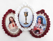 *Holy Church forbids the buying and selling of relics. However, reliquaries, or whatever encases relics, may be bought and sold. With this in mind, we offer our badges, which include a relic (a piece of cloth touched to a first or second class relic or holy object) for the devotion of the faithful.